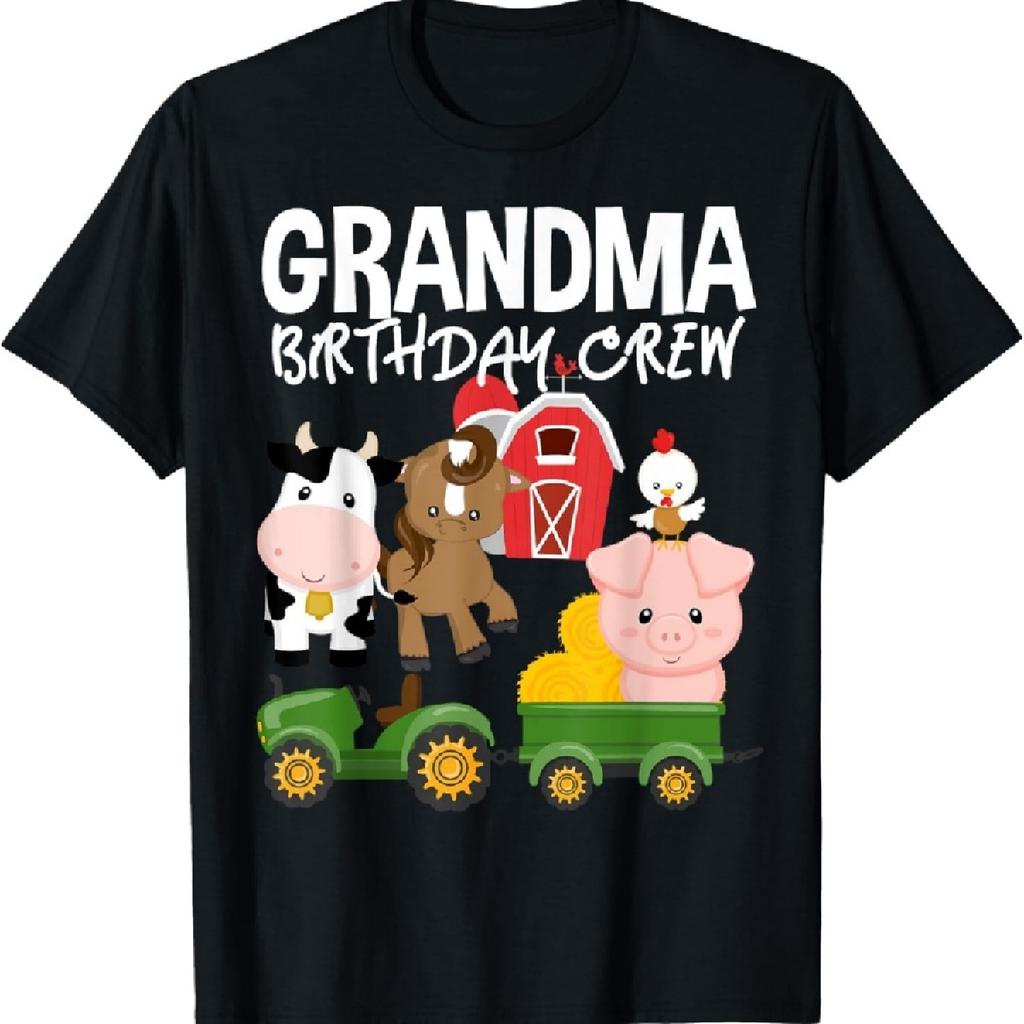 Футболка с надписью «День рождения бабушки: сельскохозяйственные животные, фермерский двор, трактор»
