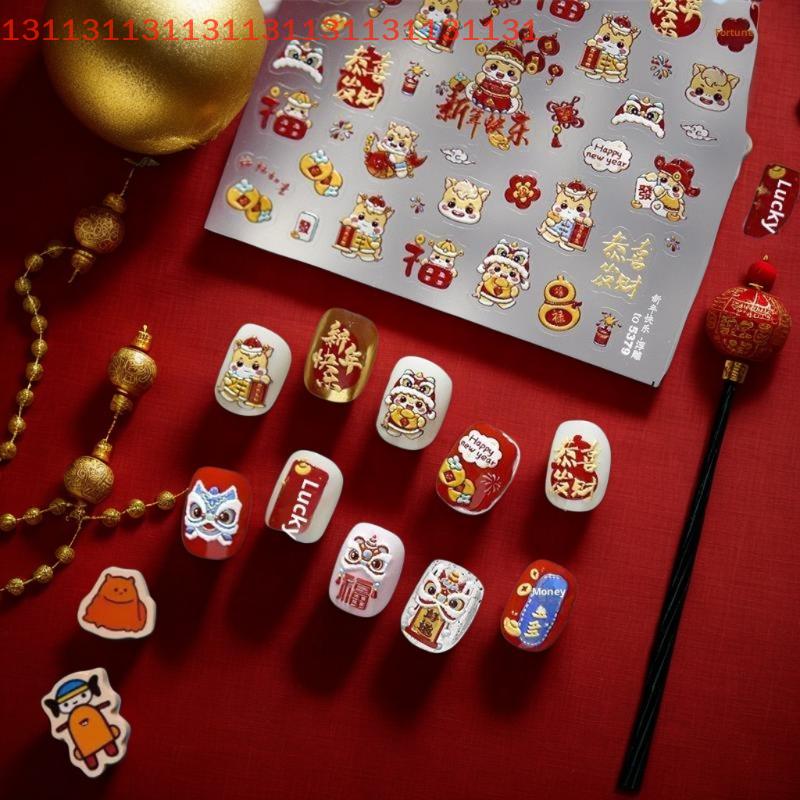 Очаровательные наклейки для ногтей Год Лошади Принт с искусством танца льва, Наклейки для маникюра на китайский Новый год с тематикой бантов — купить товар онлайн с бесплатной доставкой по всему миру!