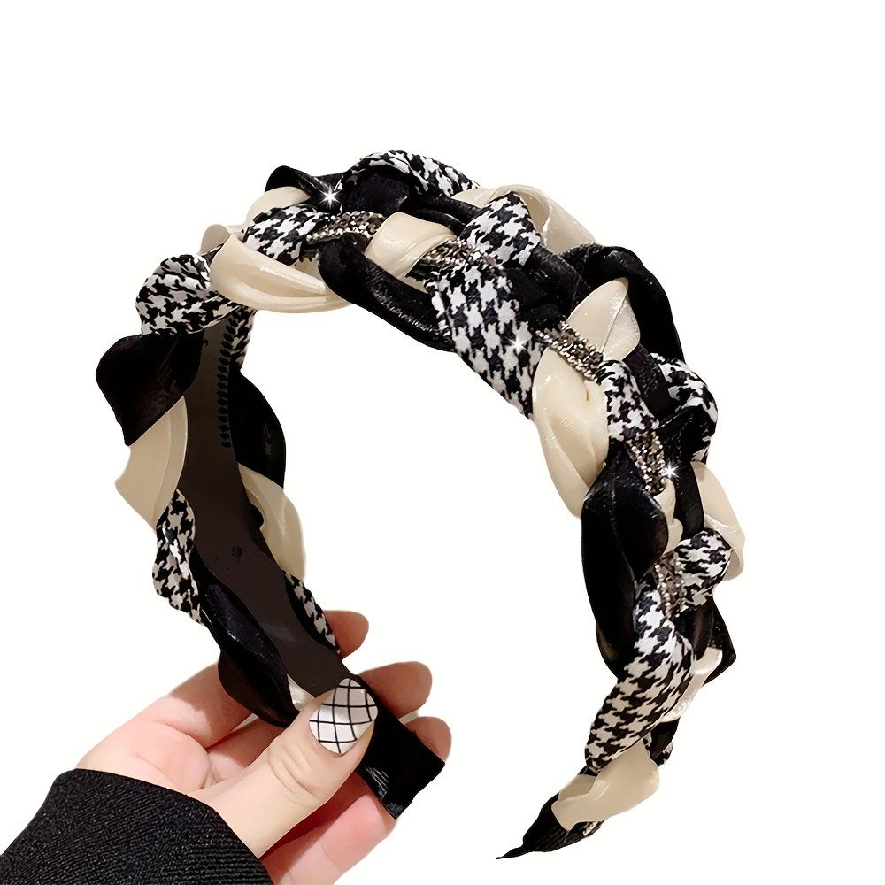 [Элегантная Нескользящая Повязка на Голову Женская] Элегантная Плетеная Повязка на Голову в Винтажном Стиле со Сверкающими Стразами - Широкий Нескользящий Аксессуар для Волос для Женщин
