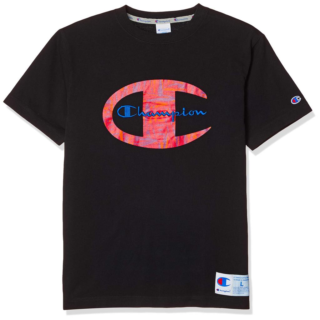 Мужская футболка Champion с коротким рукавом, графическим логотипом, логотипом-надписью, размер M, 100% хлопок, принт, вышивка, бирка, черный, (C3-R306)