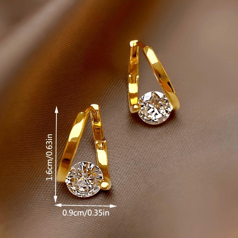 2 шт. Элегантные серьги-пусеты простого стиля с цирконием с золотым покрытием 14 карат, универсальные модные серьги для повседневной носки для женщин