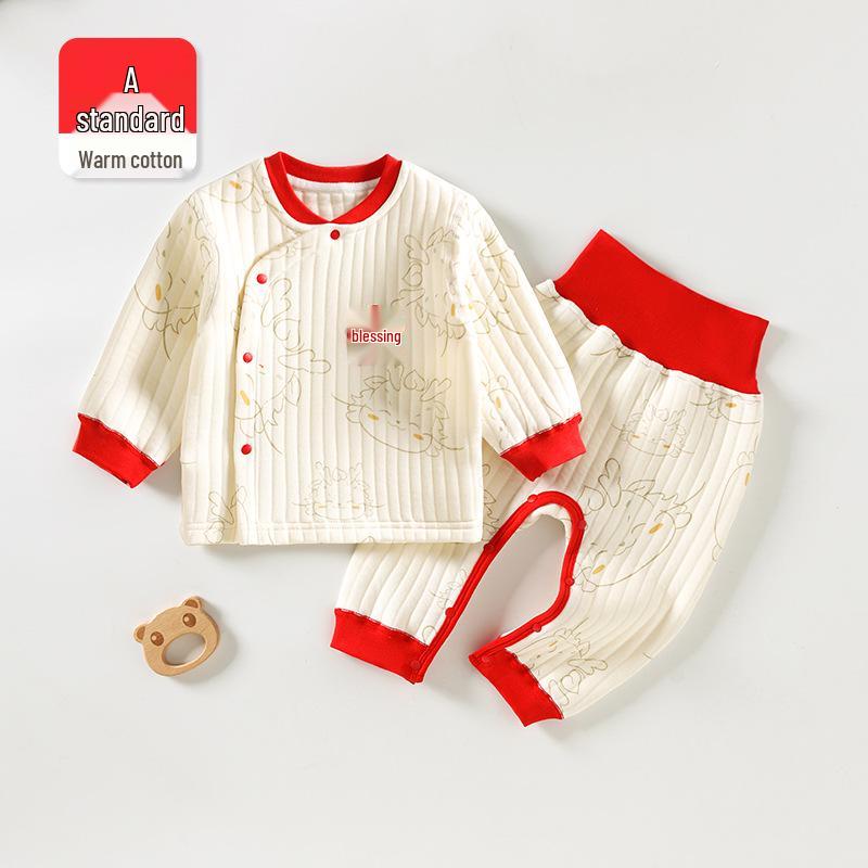 Новорожденный Стеганый Зимний Теплый Комплект: Детская одежда из двух частей с застежкой-кнопкой в области промежности для осени/весны