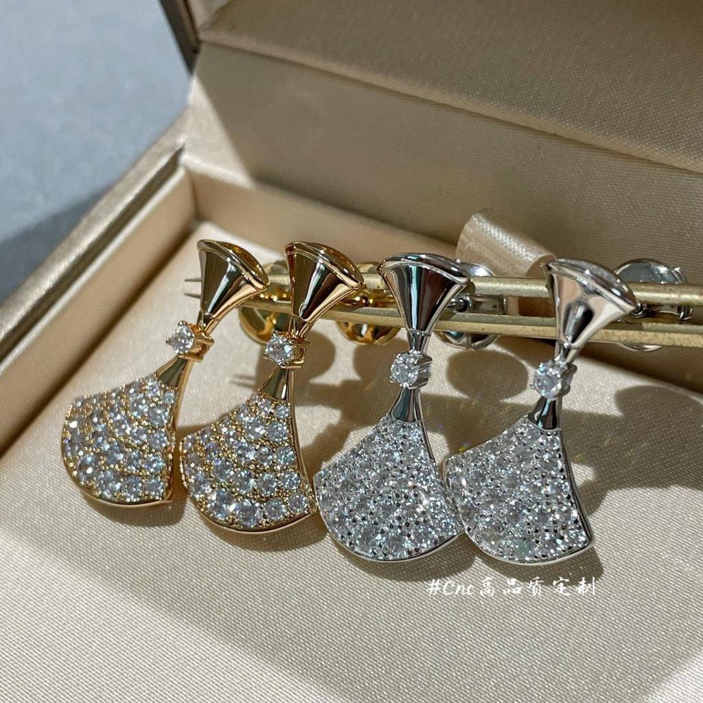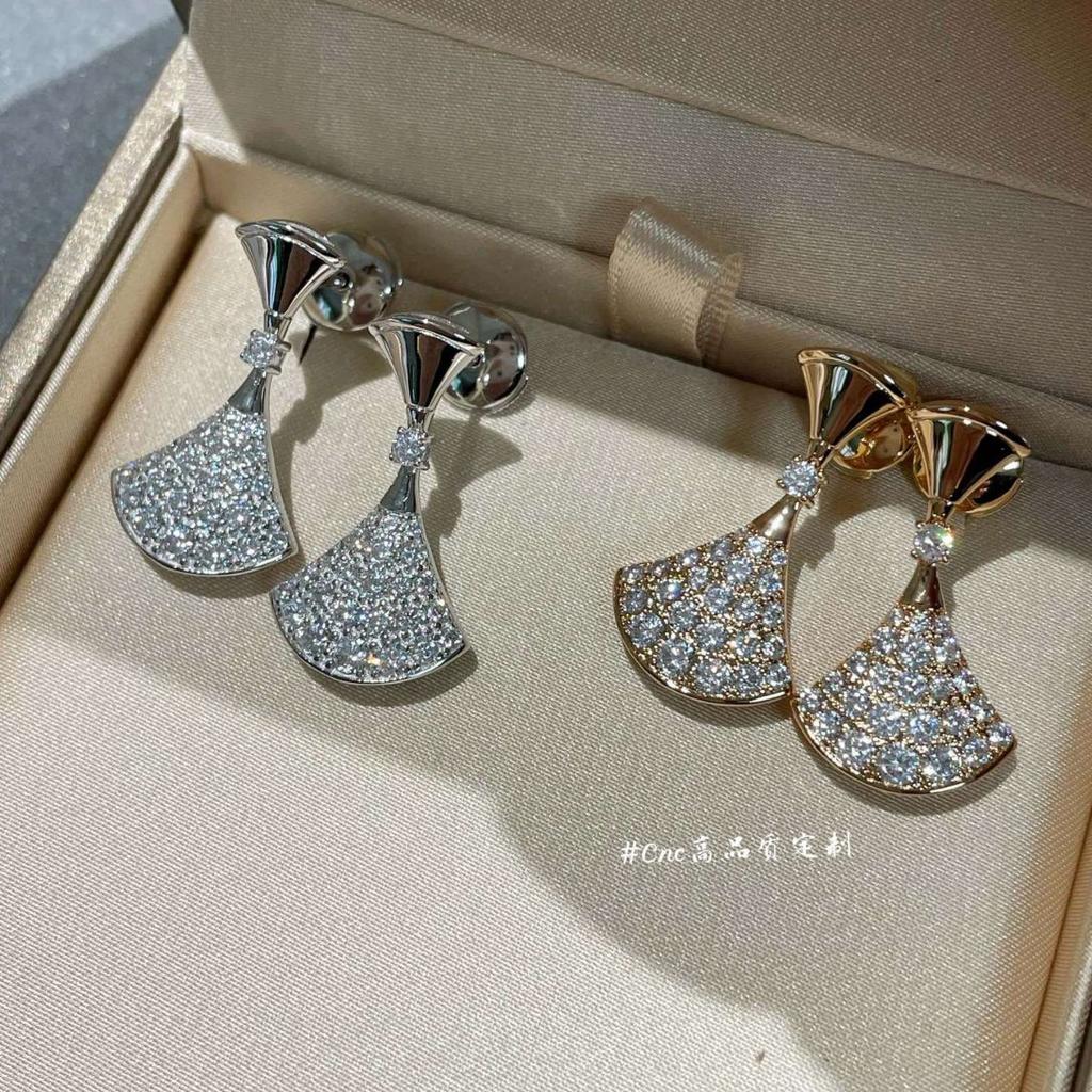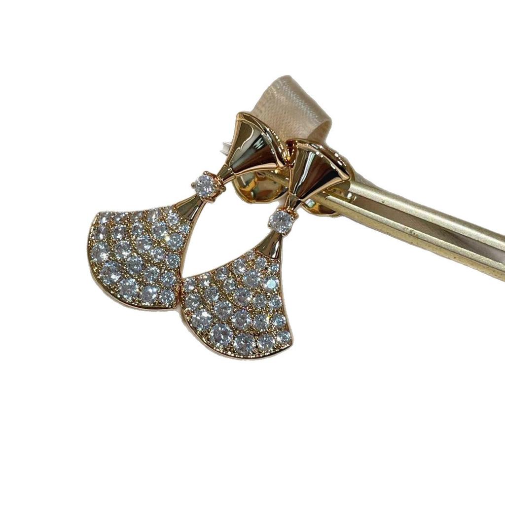 Серьги-пусеты с юбкой из бриллиантов, розовое золото, белое золото, серьги-веера с бриллиантами, V-образная позолота, 18-каратное золото