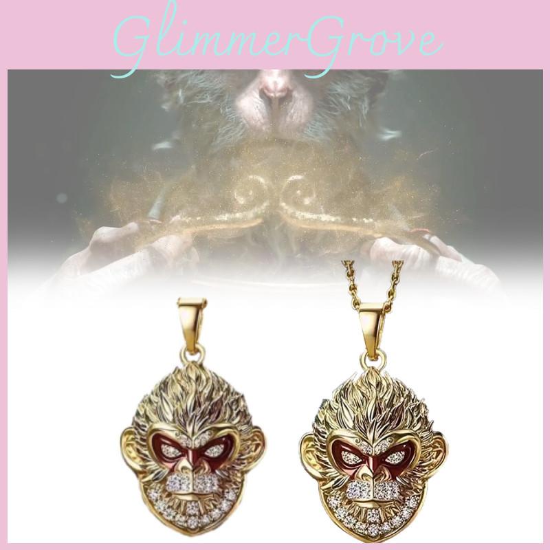 Unique Black Myth Wukong Cartoon Pendant Necklace Eye-catching Red Eye Design For Unisex Fashion
