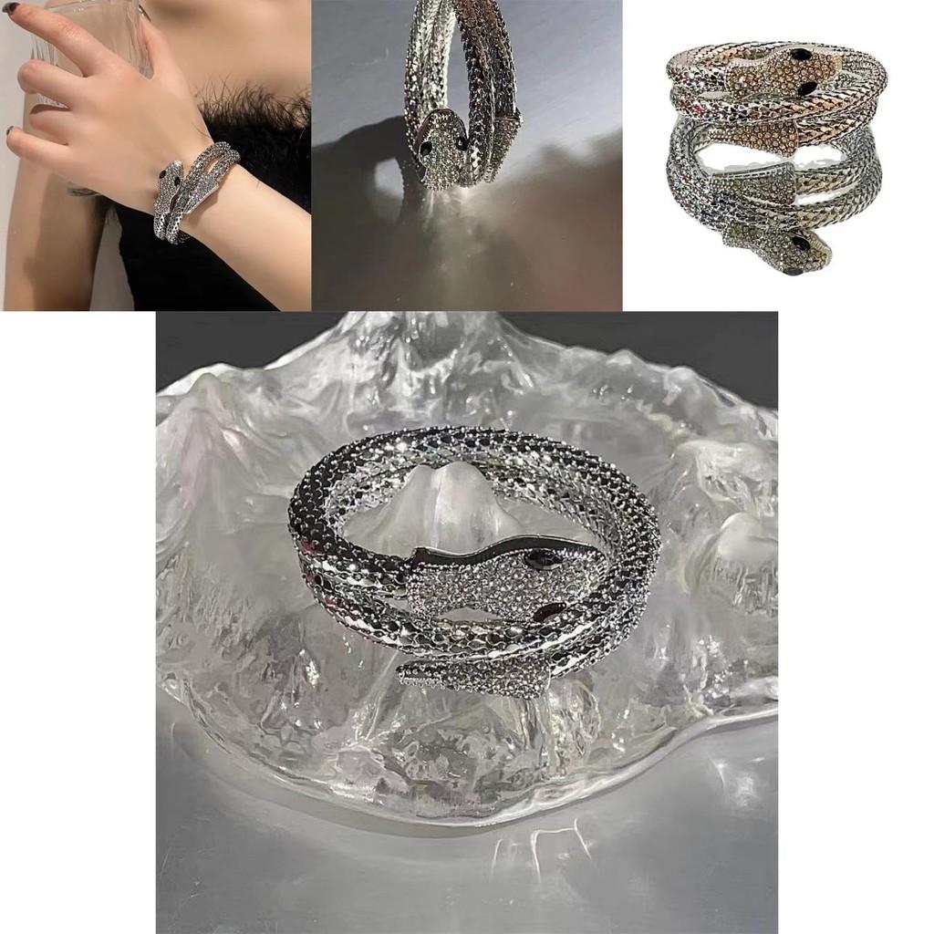 Панк Стиль Браслет из сплава с цирконом в форме змеи для женщин Смелый и выразительный
