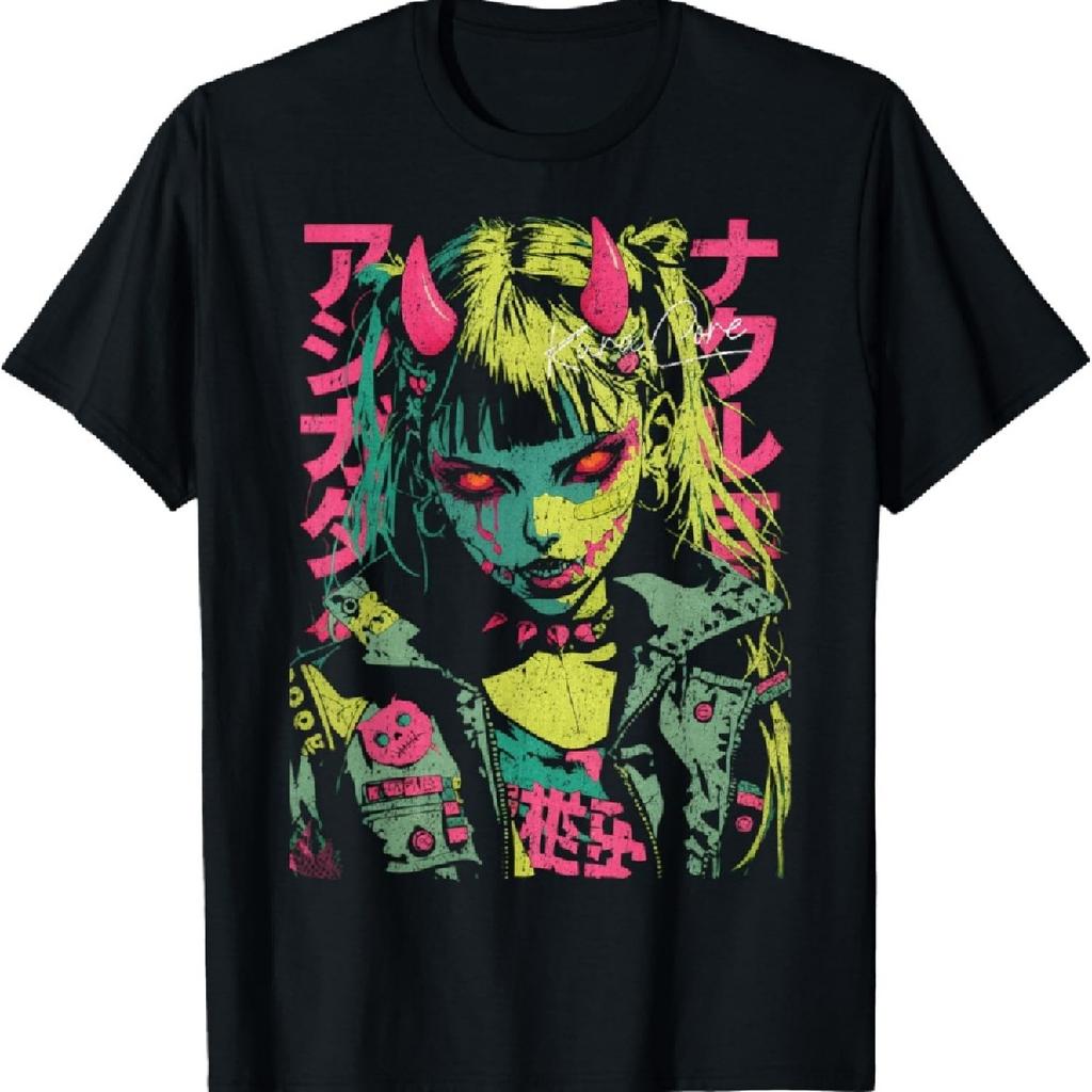 Японская уличная одежда киберпанк Y2K ретро тех웨어 манга аниме футболка