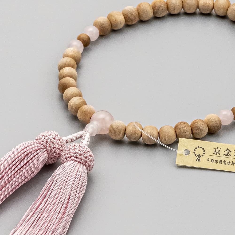 Hasegawa Buddhist Altar Buddhist Prayer Beads, Japanese Wood, Cherry Blossom Rose Quartz, Pure Silk Tassel, Ash Cherry Blossom, Women's, Made in