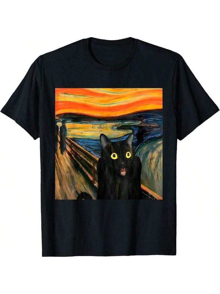 Крик Черный кот Мунк Эдвард Знаменитая картина Смешная футболка