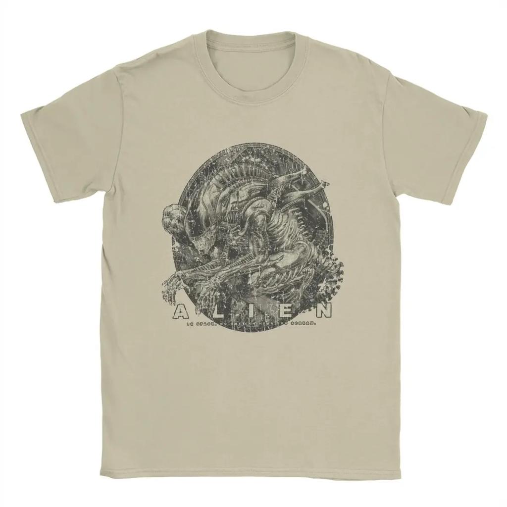 Футболки Ксеноморф 1979 фильм Чужой Мужские Хлопковые Винтажные Футболки Футболка с Круглым Вырезом Короткий Рукав Одежда Плюс #Цвет(1)