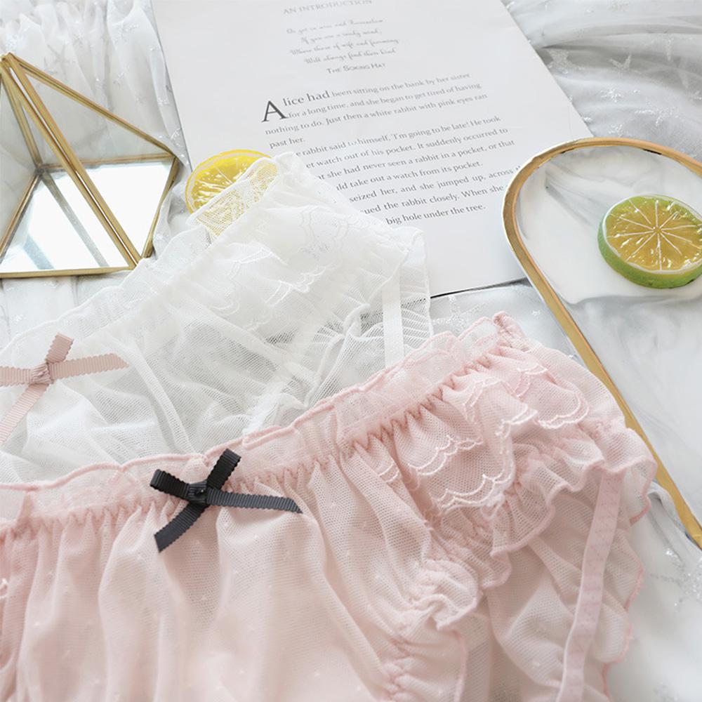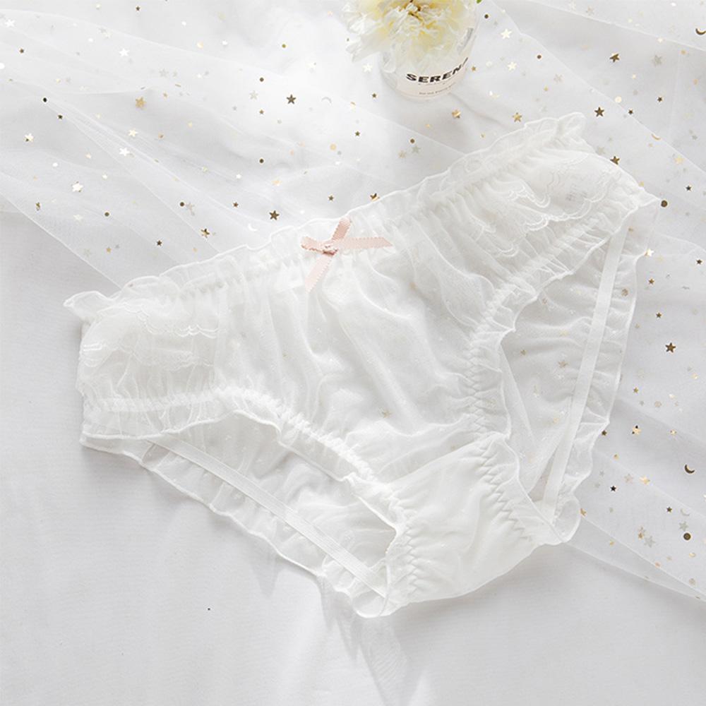 Seamless Sweet Lace Bow Transparent Mid-waist Mesh Panties Briefs Underwear Lingerie