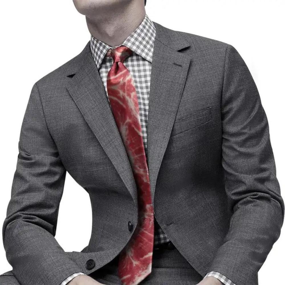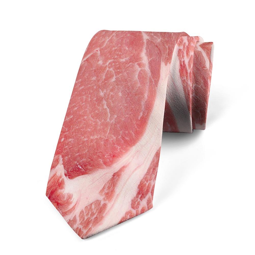 Adjustable Meat Style Design Tie Narrow Steak Food Printing Men Necktie Shirt