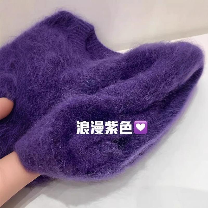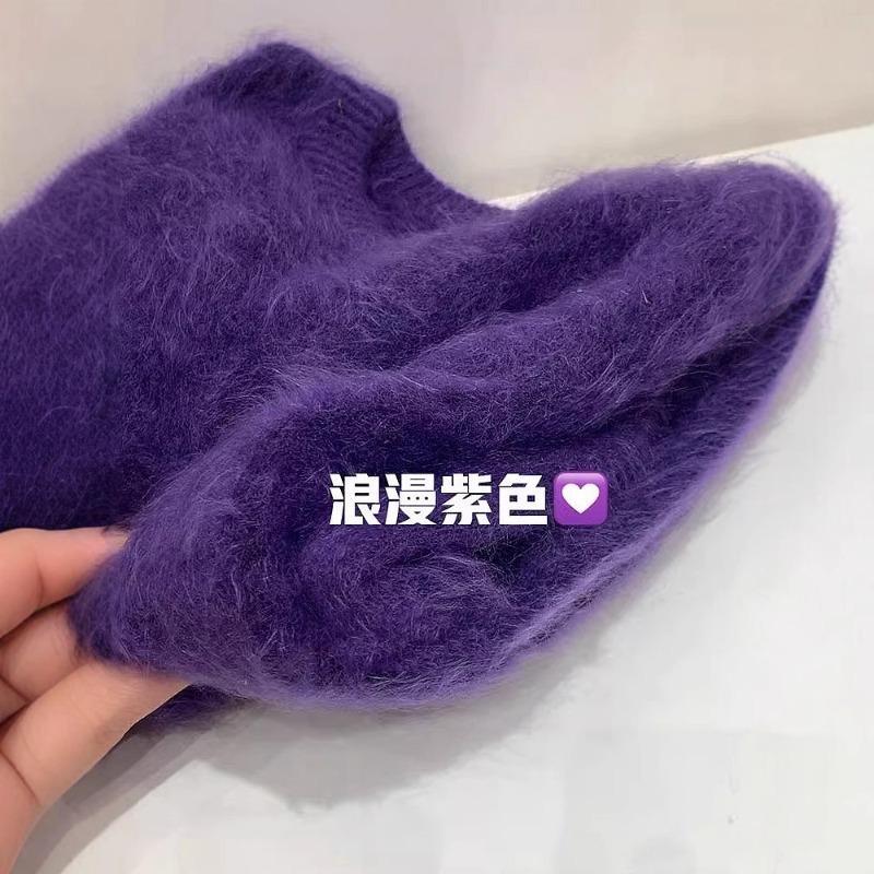 Осень высококачественный ленивый ветер мягкий восковой искусственный норковый бархат фиолетовый мохер утолщенный пуловер свитер вязаный свитер женский