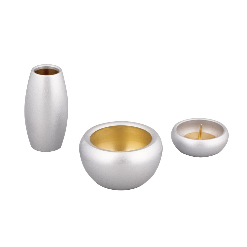 [Set of 3 Buddhist Altar Accessories] Silma Silver Crown, Silver, 3 Buddhist Altar Accessories, 2.0 inches, Modern, Copper and Brass, Round, Cute