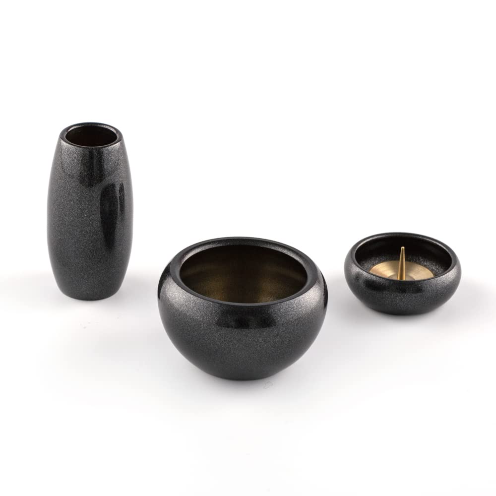 [Набор из 3 предметов для буддийского алтаря] Сильма Черный и Золотой, Набор из 3 предметов, 2,0 дюйма, Современные буддийские алтарные принадлежности, Медь и Латунь, Круглый, Милый