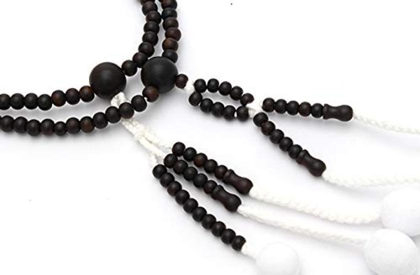 Soka Gakkai Buddhist Prayer Beads, Natural, Solid Striped Ebony, Made in Kyoto, with Cotton Tassels, SGI, Men's