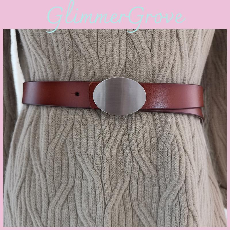 This women's leather belt features a durable two-layer cowhide construction with a sleek square alloy buckle, measuring approximately 2-4cm wide. It offers adjustable lengths of 95cm, 100cm, 105cm, and 110cm, suitable for casual or office wear. Ideal for summer outfits, it combines minimalist style with polished hardware. Wipe clean with a soft cloth to maintain its finish.