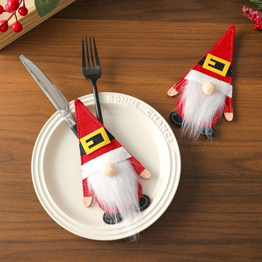 Милый держатель для столовых приборов в виде Санта-Клауса, безликая кукла, сумка для хранения рождественской посуды, сувениры для вечеринки