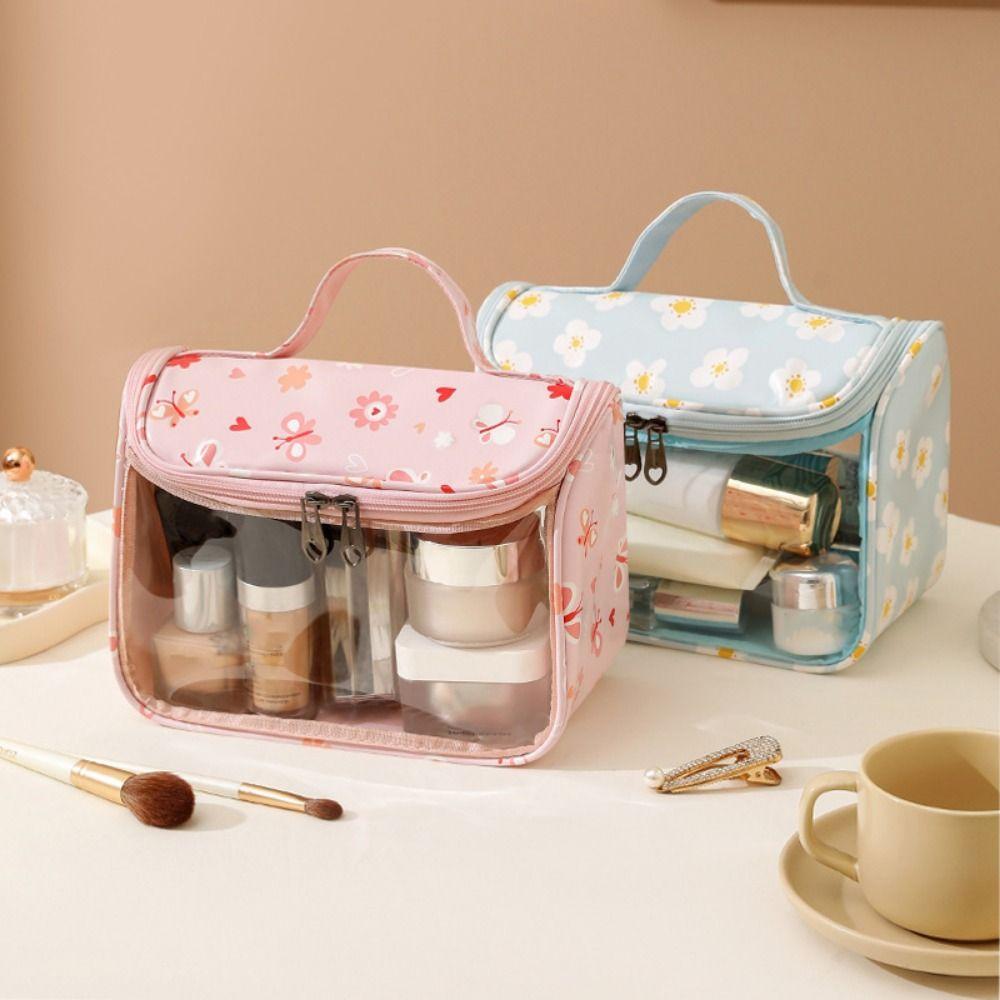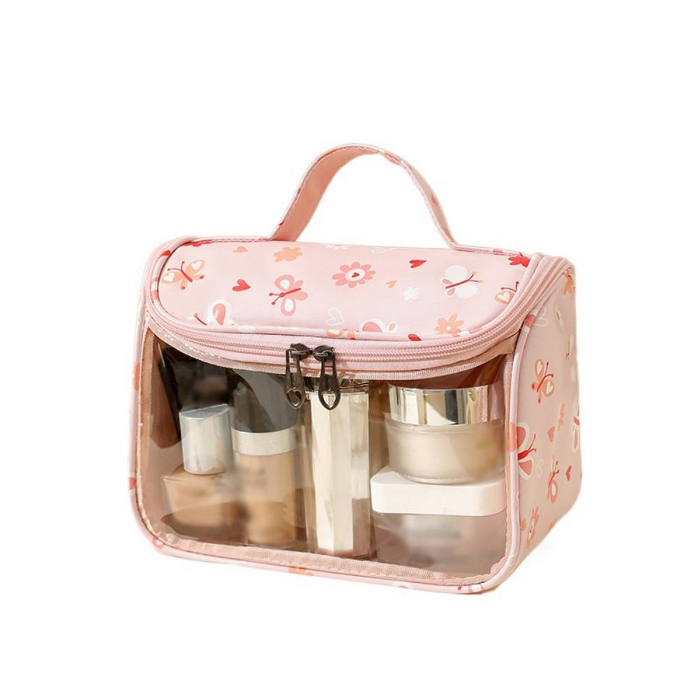 Portable Women's Cosmetic Bag with Handle Toiletry Organizer Wash Handbag Easy To Carry