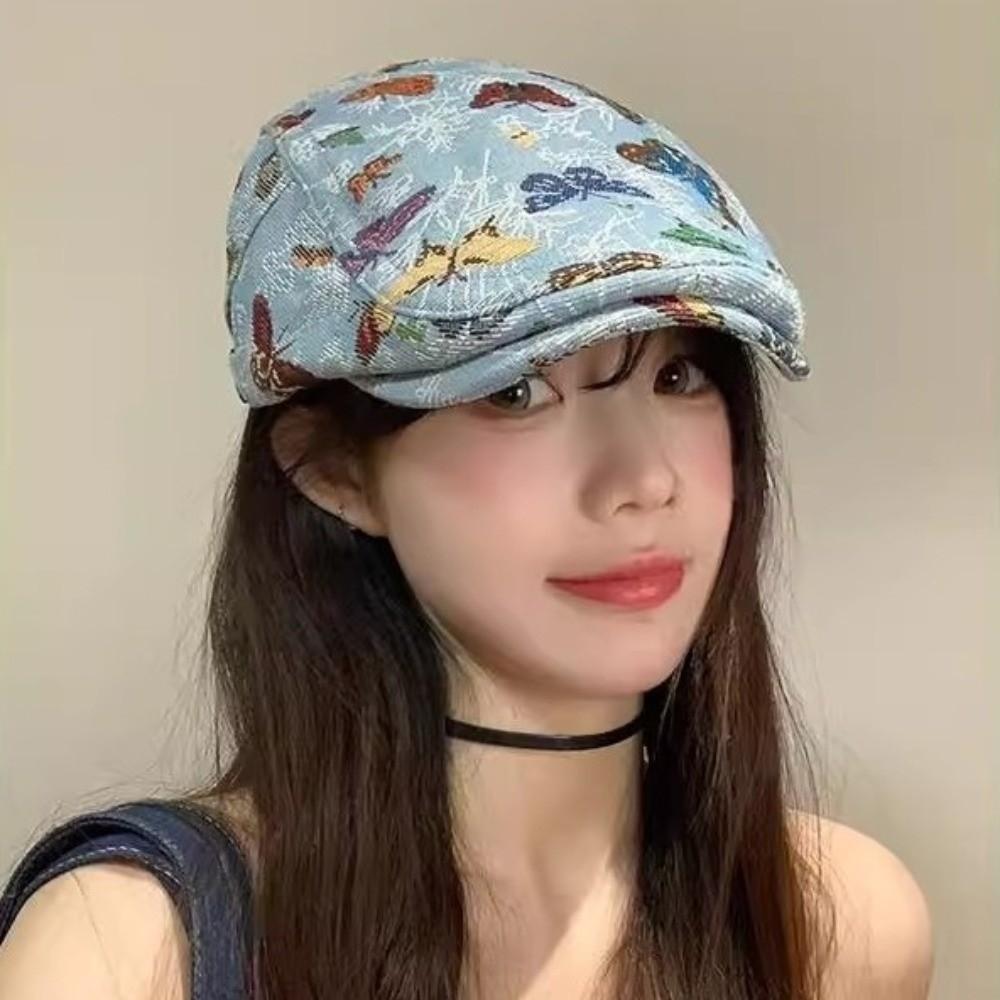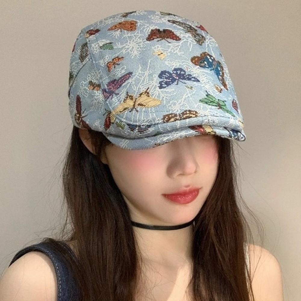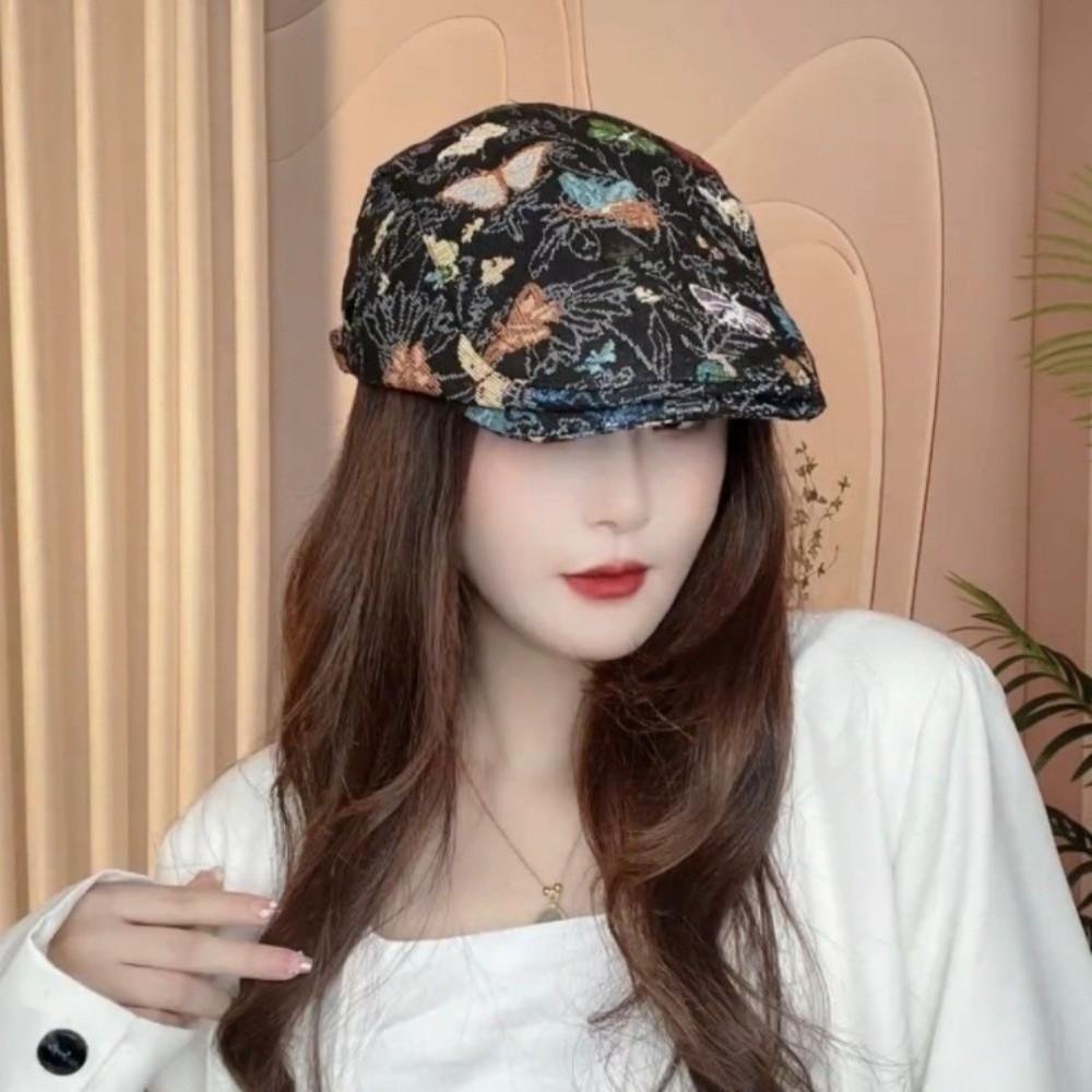 Этнический стиль Художник Берет Двусторонний дизайн Вышивка бабочки Весна Лето