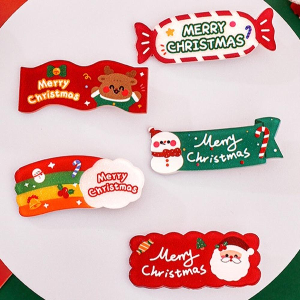 Лось Акриловая Заколка для Волос Рождественская Рождественская Заколка для Волос Kawali Снеговик Боковая Заколка Вечеринка