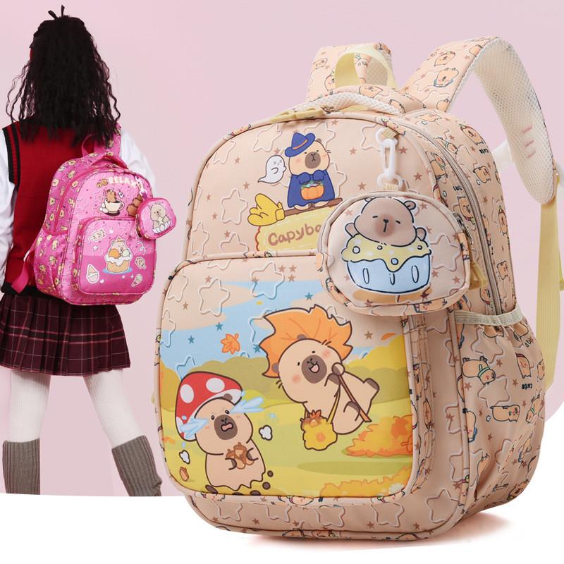 Vibrant Designs: Featuring a playful capybara cartoon design, this backpack is sure to delight children and make school days fun.