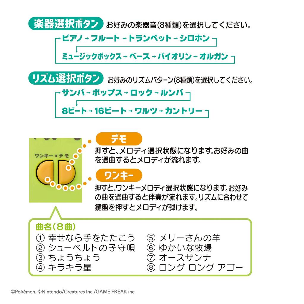 [Воспроизводите мелодии просто нажимая на клавиши] Звездообразные огоньки мигают в такт ритму, добавляя веселью азарта. Функция «одна клавиша — одна нота» позволяет играть мелодии, просто нажимая выбранные вами клавиши, создавая ощущение, что вы становитесь опытным исполнителем.. Он также украшен милым рельефом с изображением лица Пикачу.