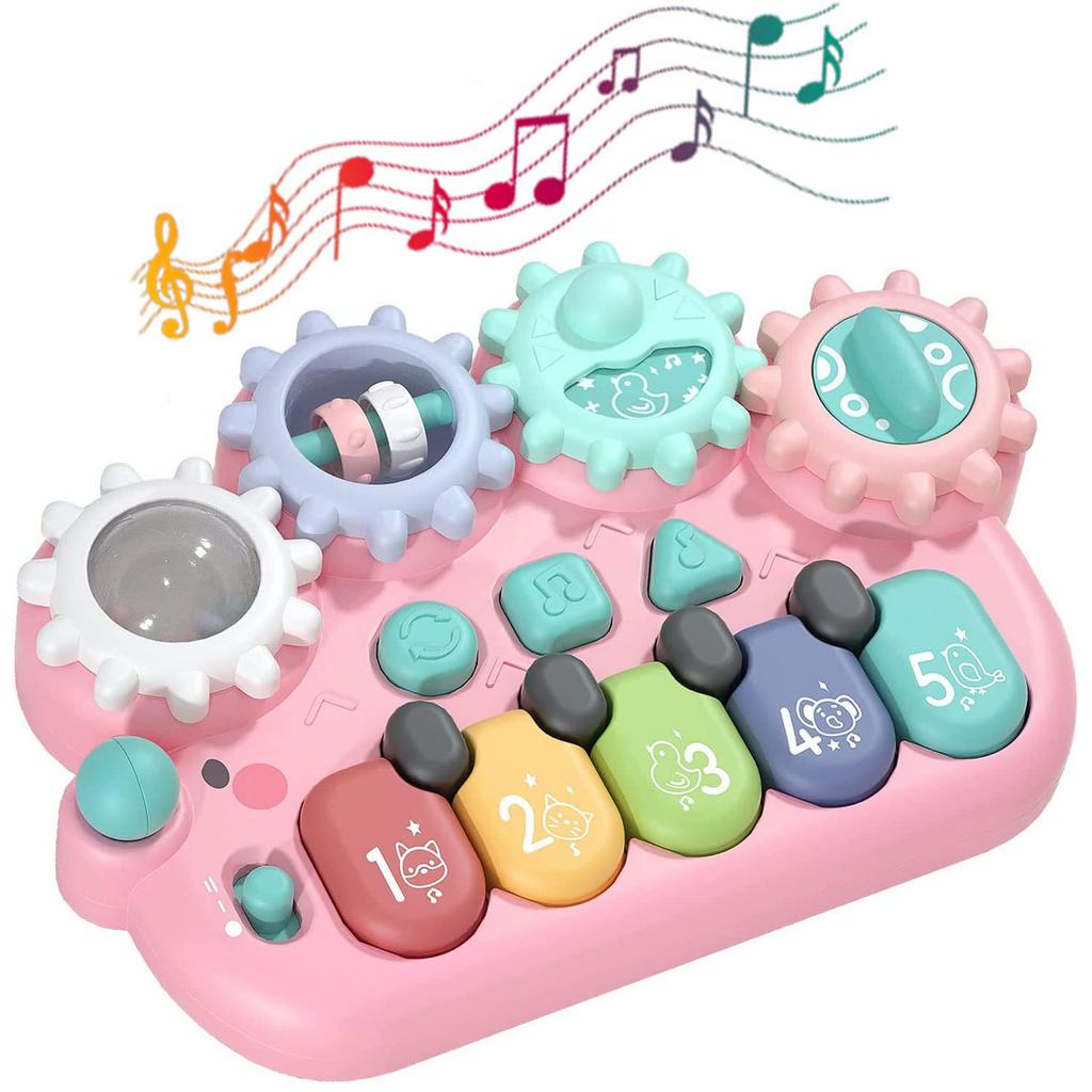 【Развивающая игрушка】Малыш может улучшить свою мелкую моторику, вращая ручки, шестерни, двигая мягкие резиновые кольца, крутя шарики и дергая эластичные шнурки. Каждая функция имеет различные звуковые и световые эффекты, чтобы привлечь внимание ребенка и доставить ему максимум удовольствия.