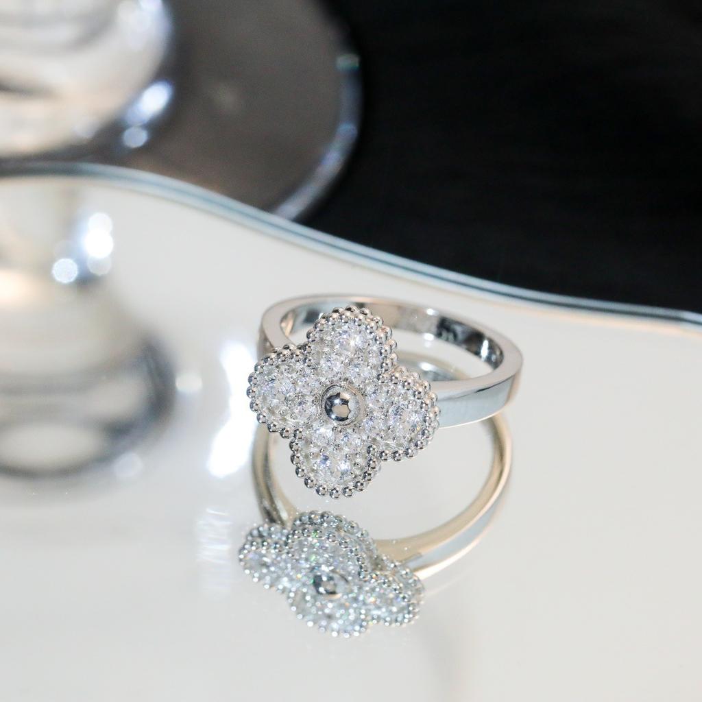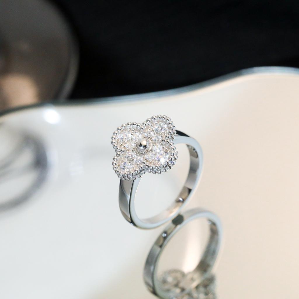 Кольцо с четырехлистным клевером, полностью инкрустированное бриллиантами, в виде одного цветка, V-образное, с толстым покрытием из 18-каратного ми-золота, для девушки, в стиле легкой роскоши, свежее и милое