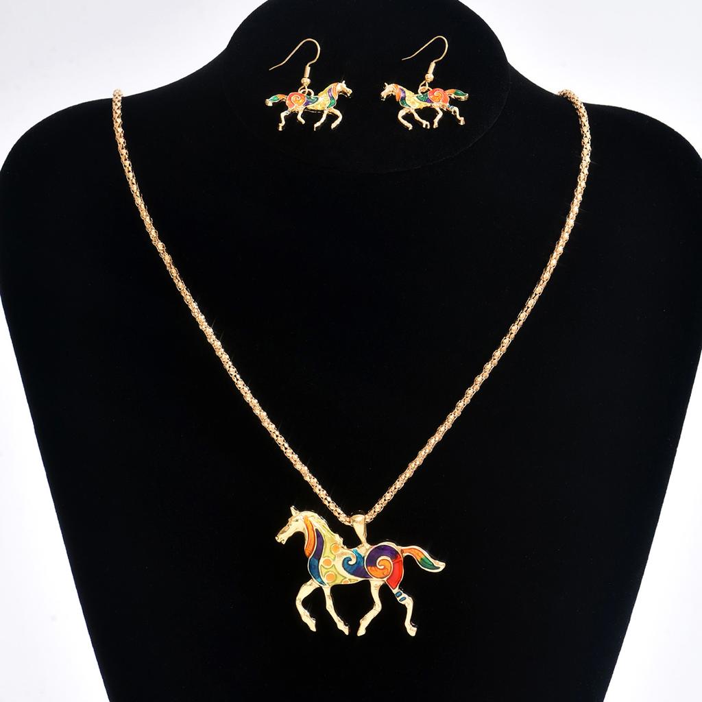 Ожерелье с подвеской в виде радужной лошади, красочное эмалевое ожерелье с подвеской в виде лошади, ожерелье с лошадьми из капель масляной глазури для женщин