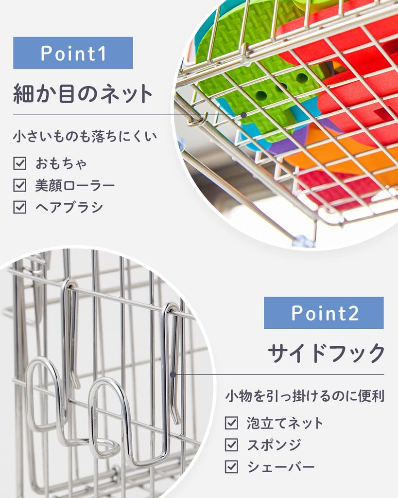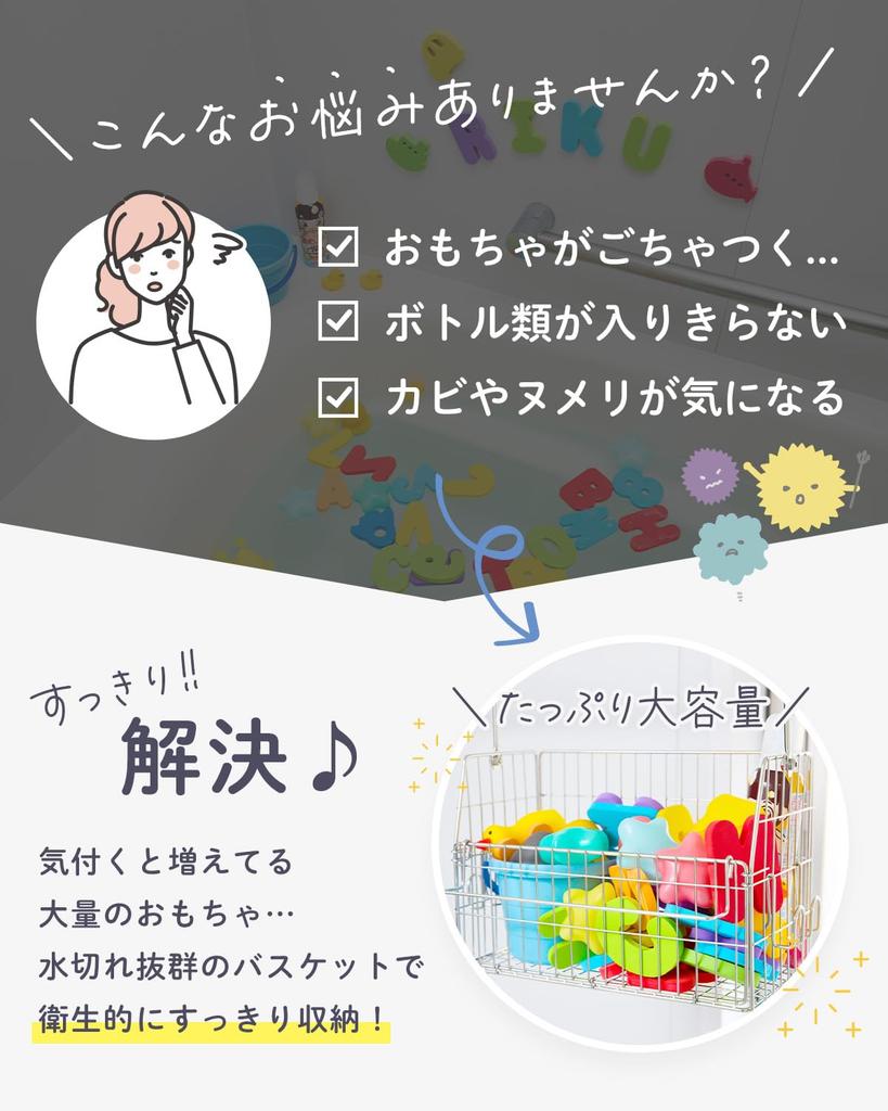 [Превосходный отвод воды] Хотите избавиться от плесени и слизи в вашей ванной комнате? Вы когда-нибудь сталкивались с плесенью или слизью, растущими в пластиковых корзинах, сетчатых мешках или сетках для хранения? Корзина для ванной Ouchi+Design имеет специальную сетчатую структуру, которая обеспечивает отличный отвод воды.. Предотвращает скопление воды, тщательно предотвращая рост черной плесени и слизи.. Это рекомендованный товар для тех, кто хочет поддерживать чистоту в ванной комнате и уменьшить хлопоты по очистке от известкового налета и плесени.