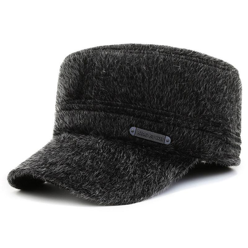 Теплая и стильная зимняя шляпа с плоским верхом для мужчин с утолщенной защитой ушей и воздухопроницаемостью