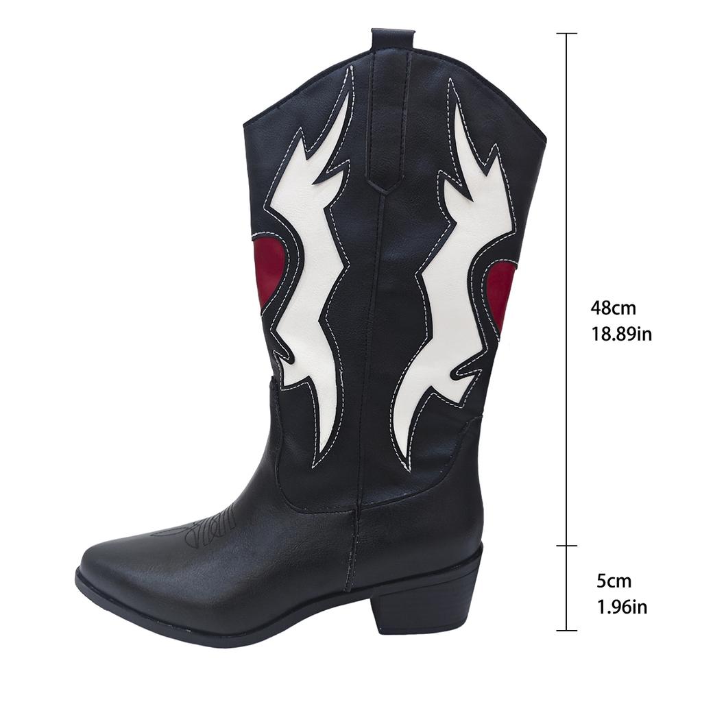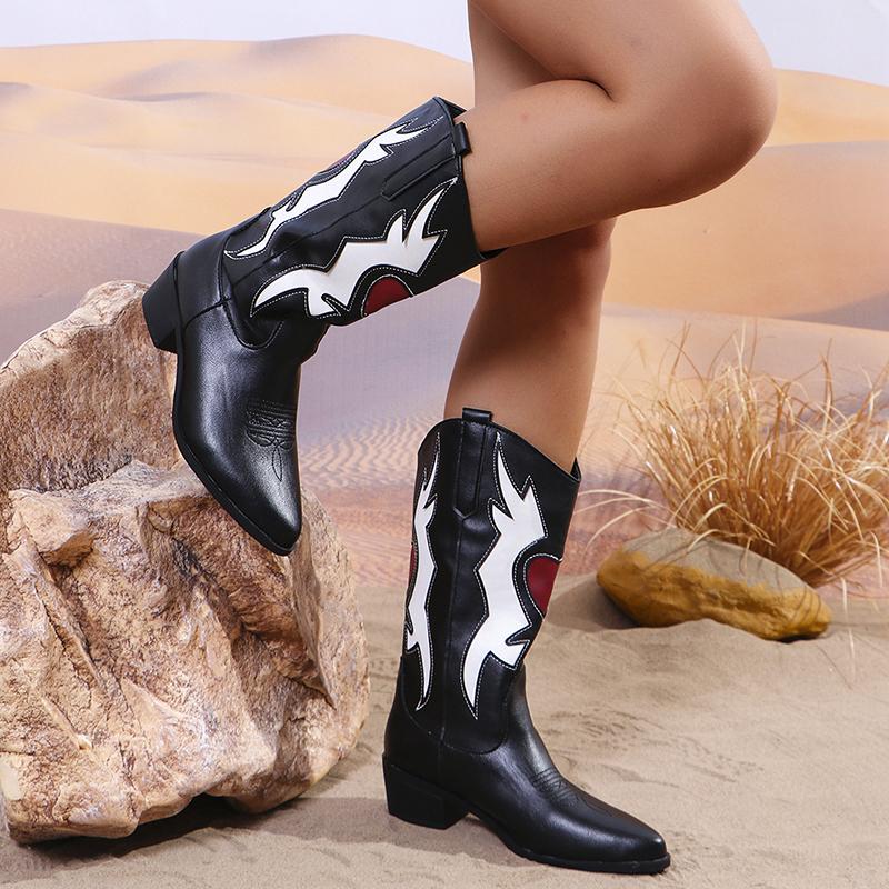 Мода Женская мода на толстом каблуке Cowgial Boots Plus Size 43 Slip On Mid Calf Boots Women 2024 Trend Comfortable Western Boots Woman