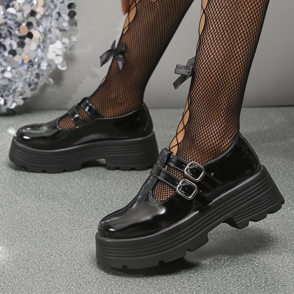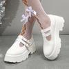 Модные туфли Мэри Джейн на толстой платформе женские лакированные туфли с двумя пряжками на ремешке женские черные белые толстые высокие каблуки туфли в стиле Лолита