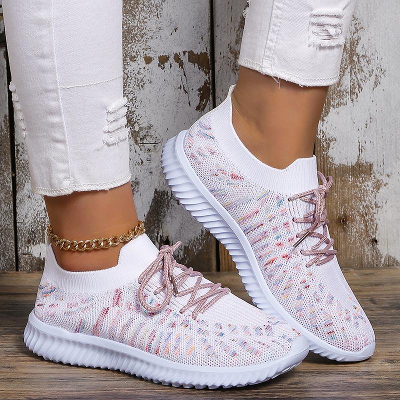 Мода модные цветные вязаные кроссовки для женщин 2024 осень пара шнуровка нескользящие балетки повседневная спортивная обувь для женщин плюс размер 35-43