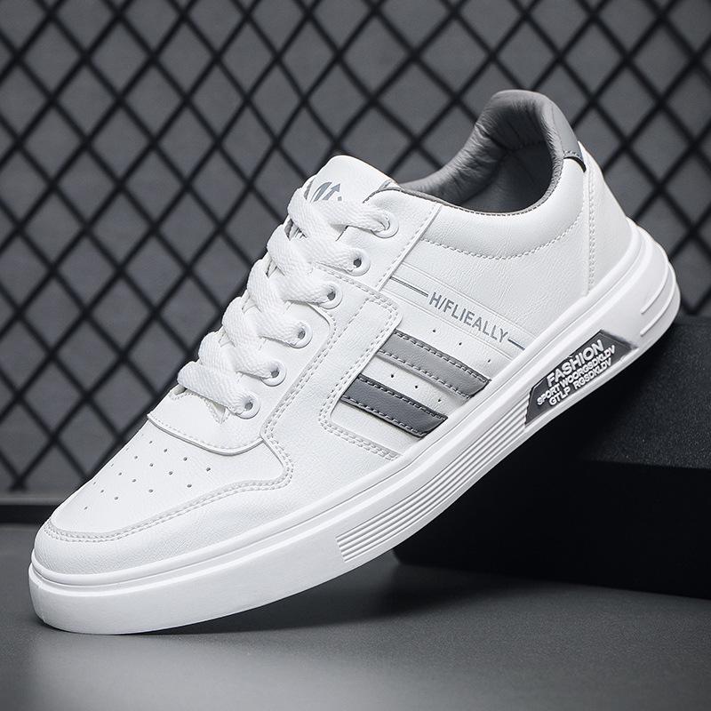 Модные новые мужские кожаные кроссовки белые мужские вулканизированные туфли осенние молодые простые популярные износостойкие легкие водонепроницаемые туфли на плоской подошве