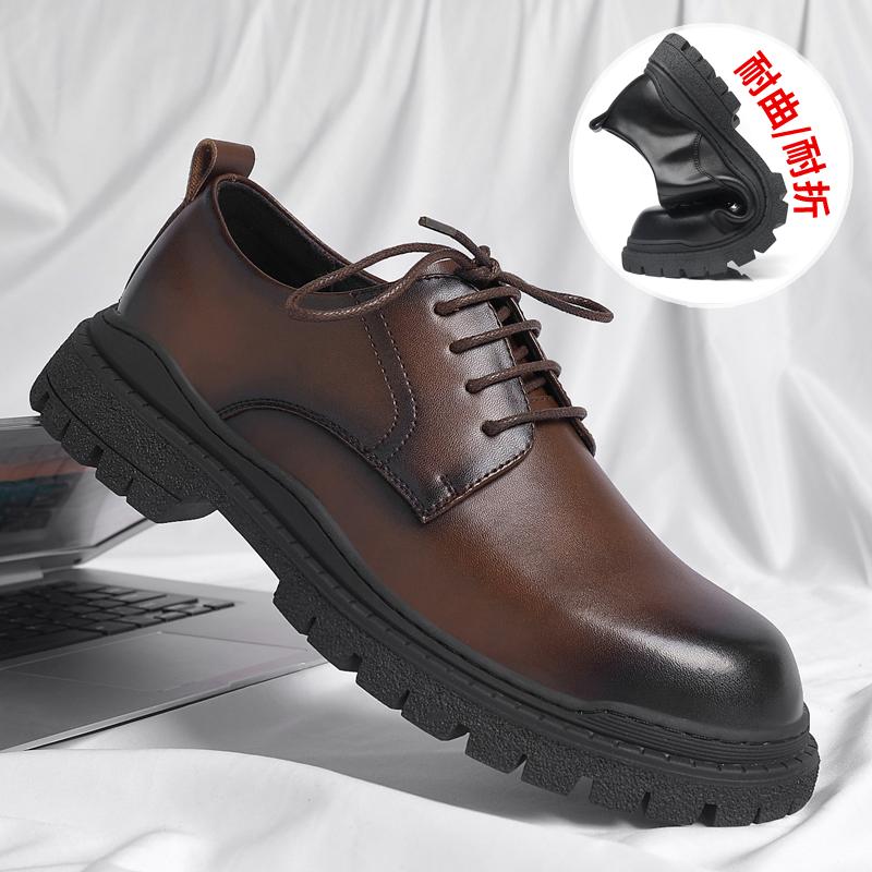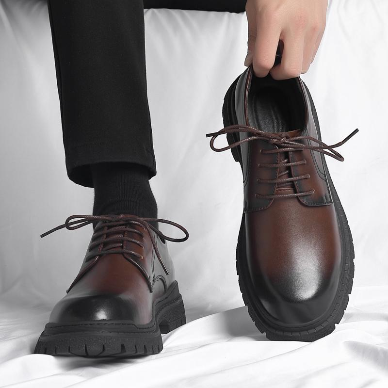 Модная универсальная удобная мужская обувь Повседневная обувь Мужская обувь из натуральной кожи Рабочие ботинки Деловые повседневные туфли на толстой подошве с круглым носком
