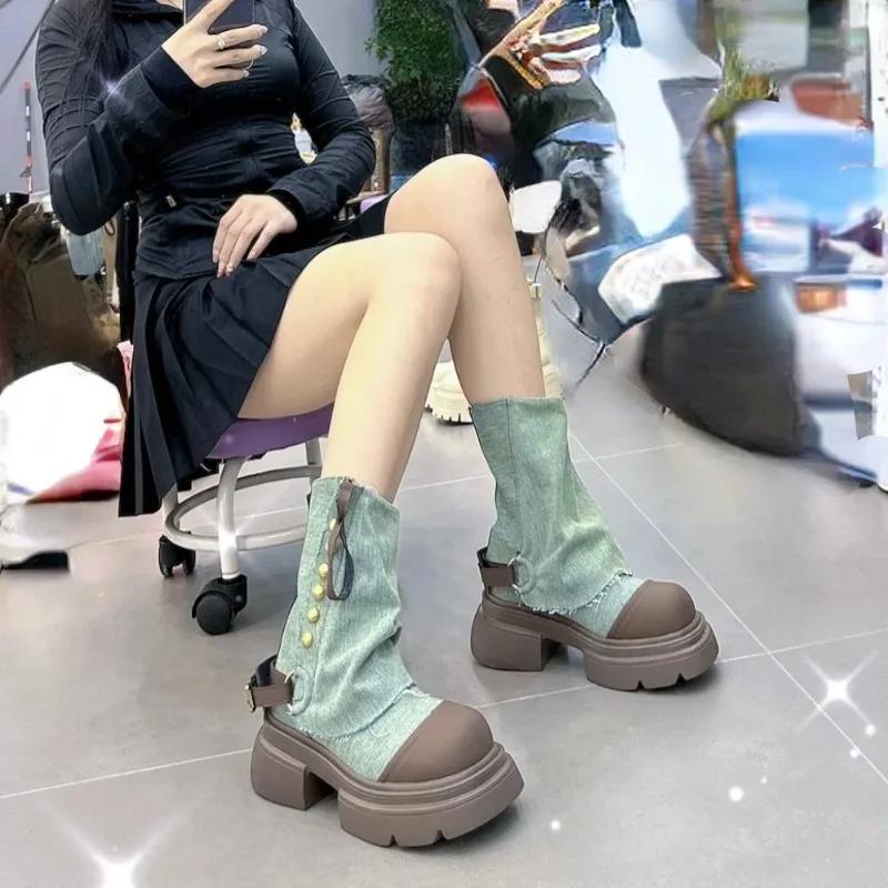 Модные женские балетки, ботильоны ковбойского стиля челси, зимняя трендовая платформа, гладиаторские готические туфли, новые массивные мотоциклетные боты, женская обувь