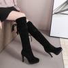 Модные женские сапоги на очень высоком каблуке, зимние туфли выше колена для женщин, черные сапоги с острым носком, горячее предложение, стильные сапоги из искусственной кожи
