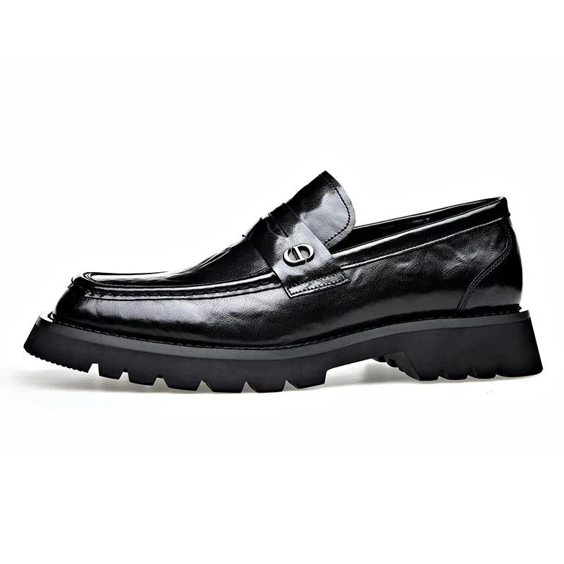 Мода 2024 года, модные мужские туфли большого размера в британском стиле в стиле ретро, весенне-осенний дизайн, новые мужские туфли из кожи на толстой подошве без застежек