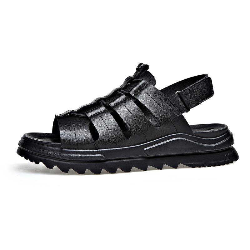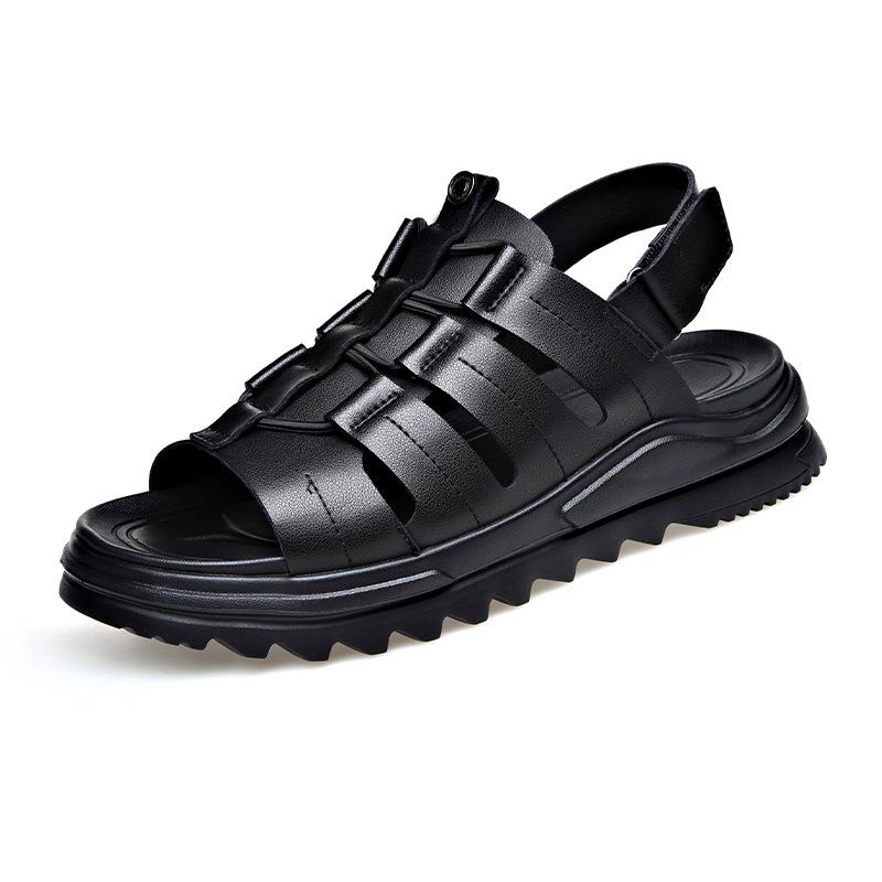 Мода 2024 Лето Новая Мода Сандалии из Коровьей Кожи для Мужчин Мягкая Подошва Повседневные С Открытым Носком Пляжная Обувь Мужские Черные Сандалии на Платформе Homme