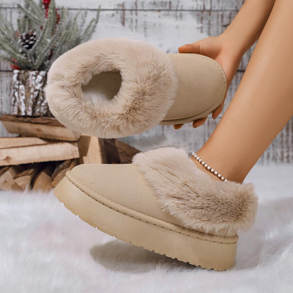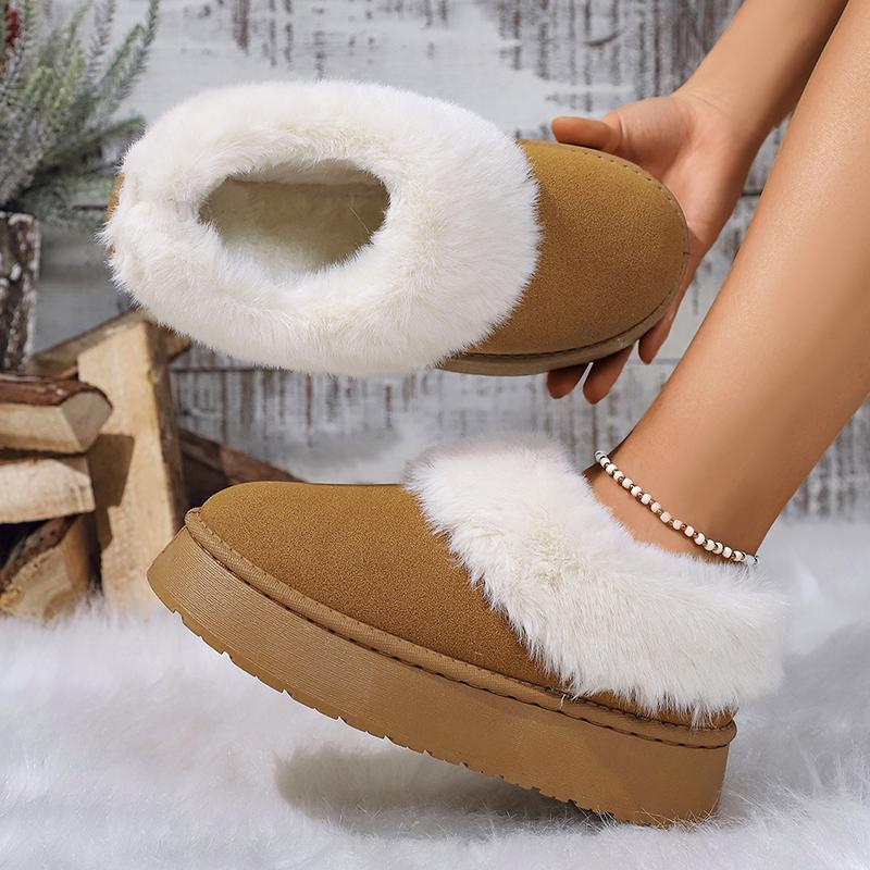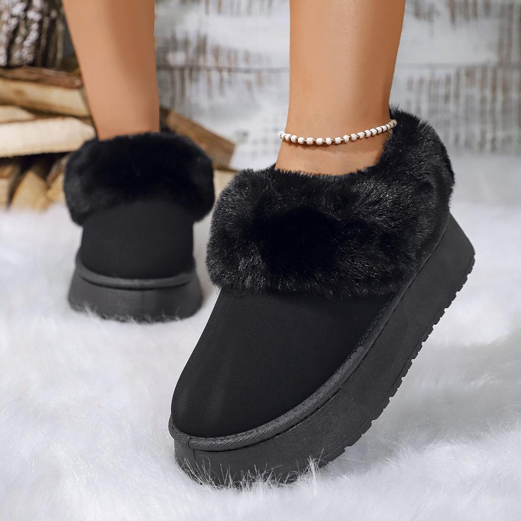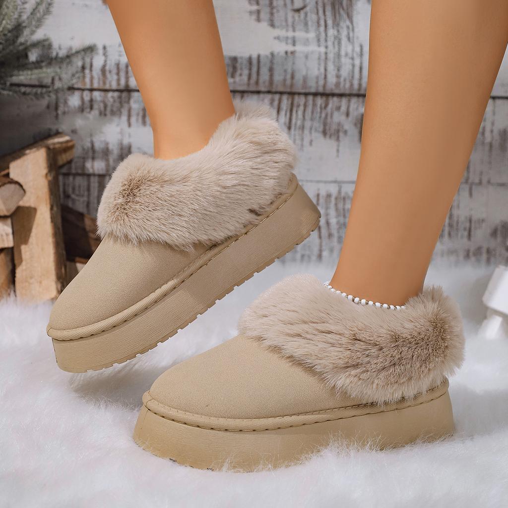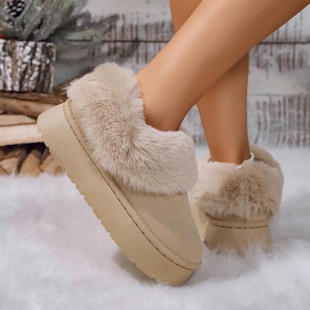 Модные женские зимние сапоги на толстой подошве с пушистым верхом, повседневные, слипоны, длинные, с хлопковой подкладкой, женские, удобные, теплые, с искусственным мехом, зимние сапоги