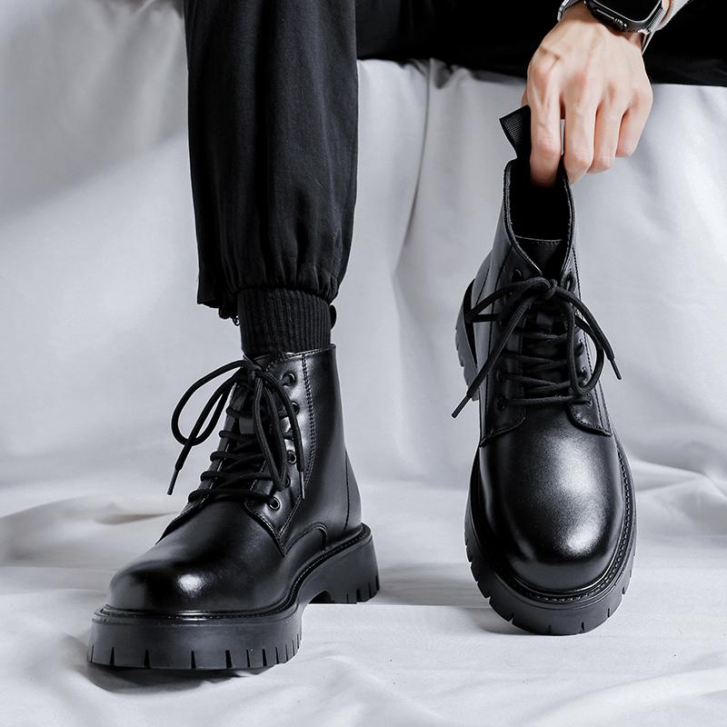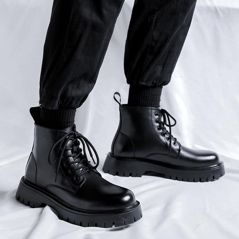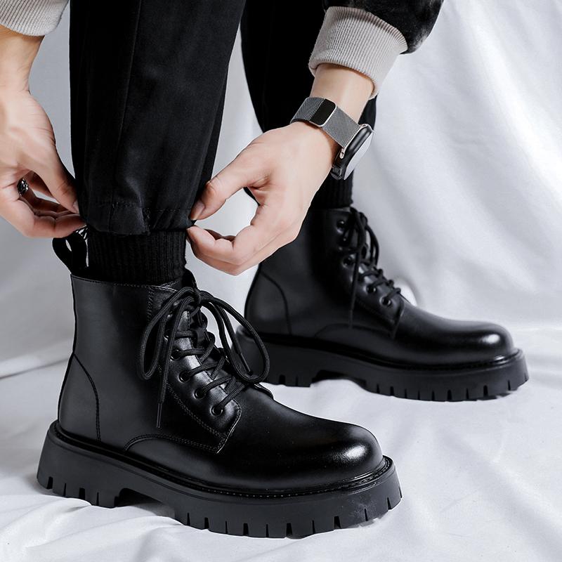 Модные мужские черные кожаные ботинки на платформе, удобные мягкие ботинки для спорта на открытом воздухе, для альпинизма, для мужчин, мотоциклистов, теплые ботинки