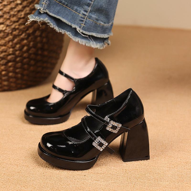 Модные блестящие туфли-лодочки с квадратной пряжкой и двойными кристаллами на блочном каблуке, женские туфли Мэри Джейн, элегантные сандалии для свадебной вечеринки на французском квадратном каблуке — купить товар онлайн с бесплатной доставкой по всему миру!