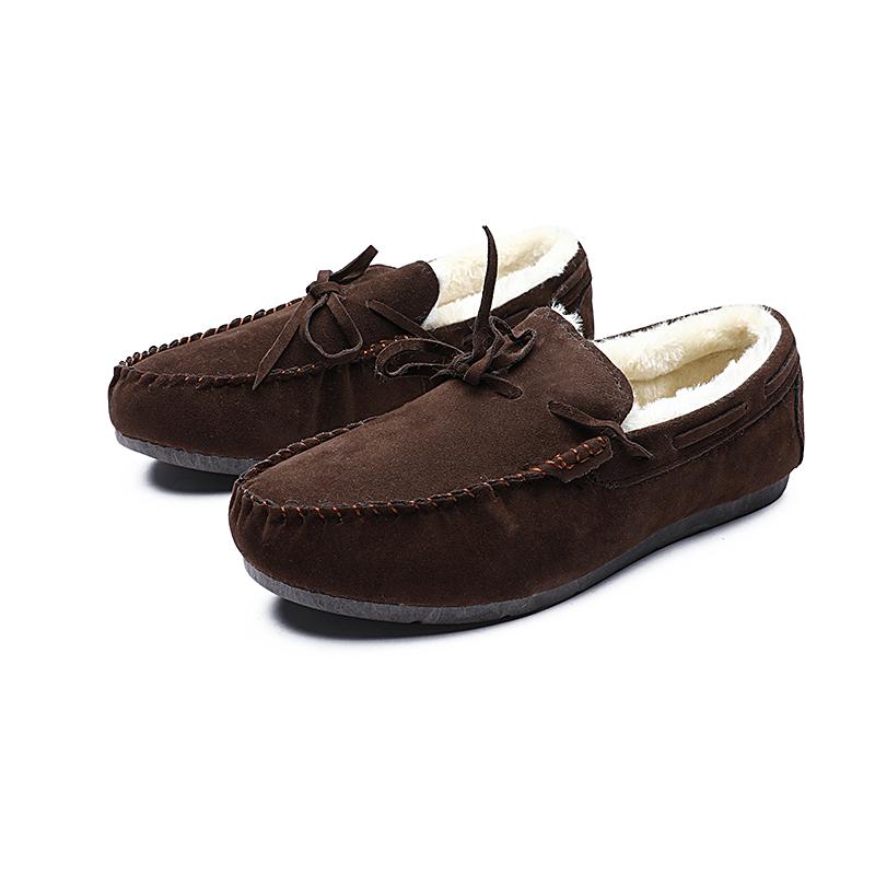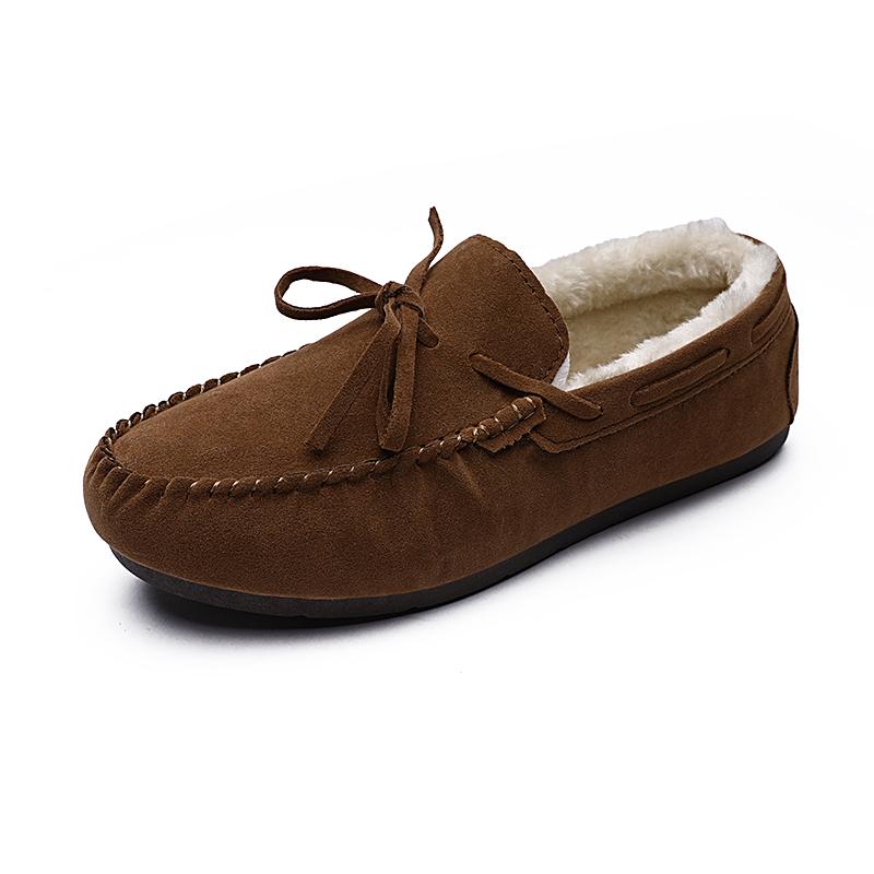 Модные зимние замшевые мокасины для вождения, лоферы, обувь дуду, мужские, плюс теплые, с бантом, корейская версия, повседневные, с мелким вырезом, плоские, ленивые, хлопковые туфли