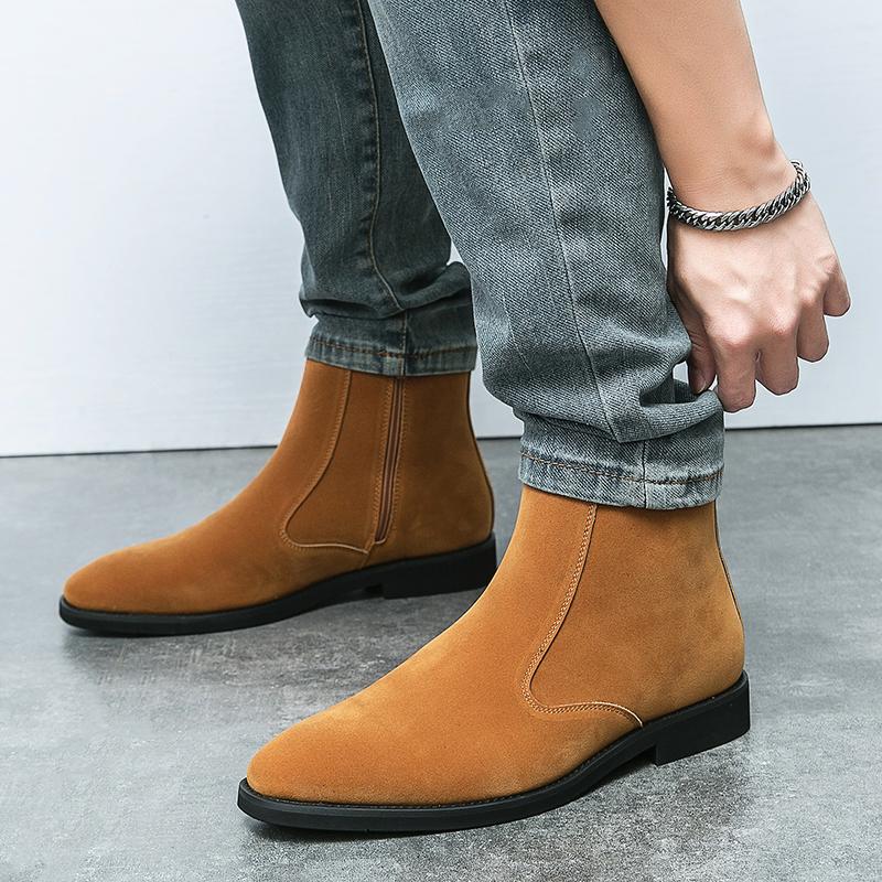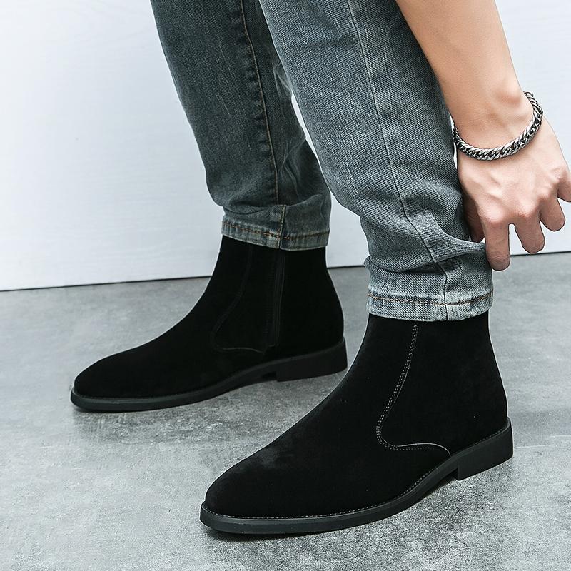 Модные новые роскошные брендовые мужские кожаные ботинки «Челси» в европейском и американском стиле с высоким верхом. Модные тенденции. Замшевые ковбойские сапоги.