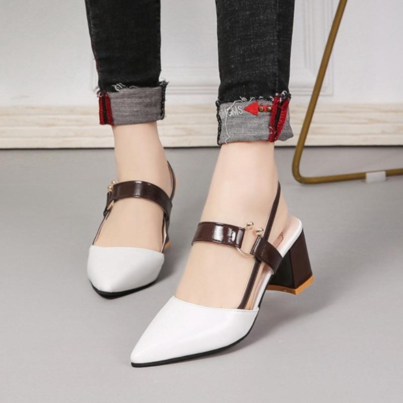 Модные женские босоножки на каблуке с острым носком и открытой пяткой, летние, новые, модные, с широким ремешком и толстым каблуком, повседневные туфли-одинарки