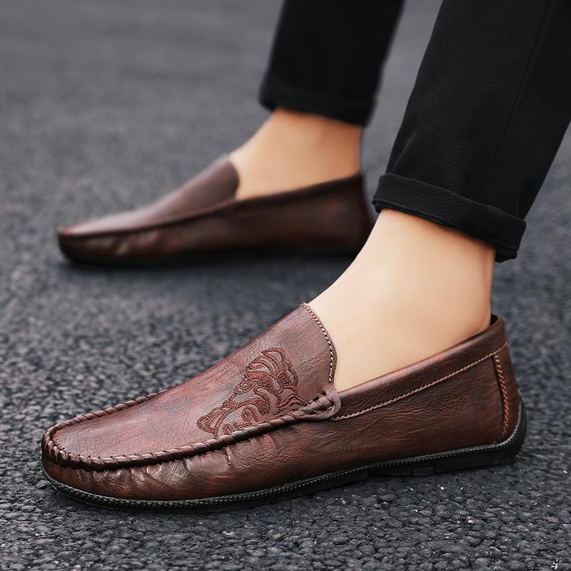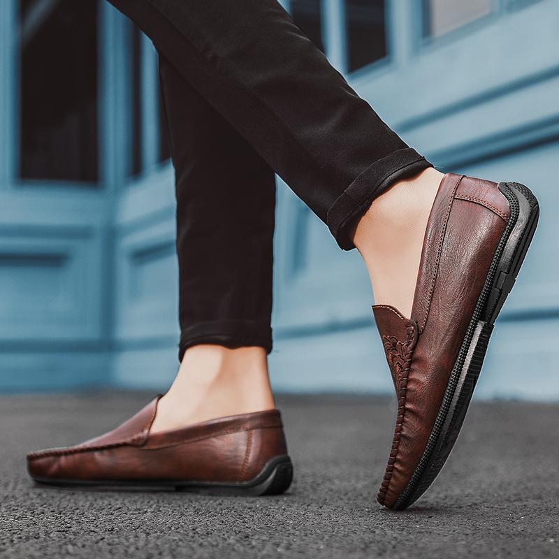 Мода 2025 Осень НОВЫЕ Мужские лоферы Удобная плоская повседневная обувь Мужские дышащие мокасины Слипоны Мягкая кожа Обувь для вождения