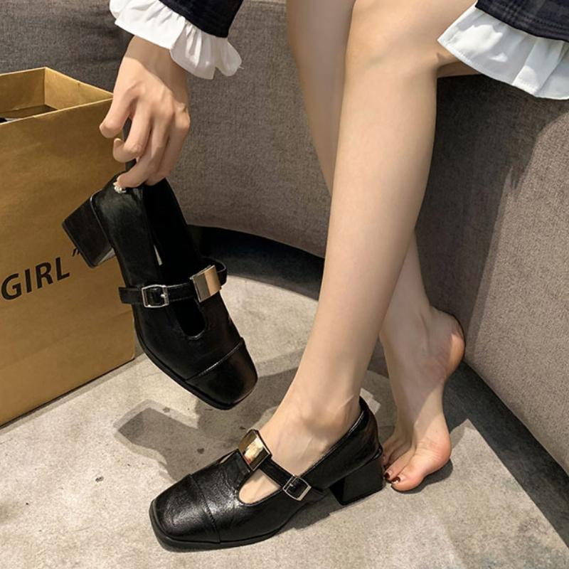 Модные женские туфли Мэри Джейн с квадратным носком и неглубоким вырезом, на среднем устойчивом каблуке, из массивной кожи, женский тренд 2025, осенняя мода, элегантные женские туфли