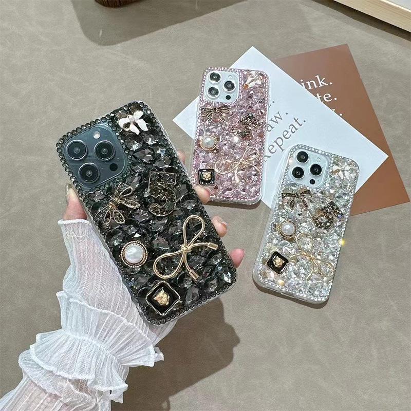 Для IPhone17Promax Чехол для мобильного телефона для Apple 14 Стразы Бант 15 Роскошный Полный Бриллиант Жемчуг Голова Тигра для Женщин