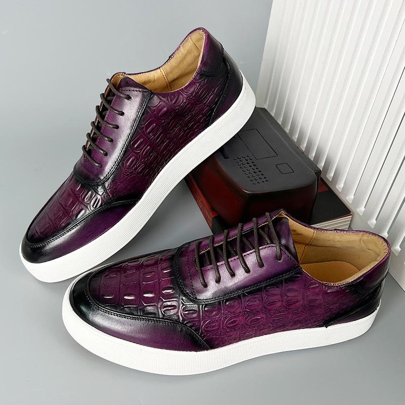 Мода Новейшие 2025 Весна Мужские Натуральная Кожа Повседневные Кроссовки На Шнуровке Ручная Работа Дизайн Под Крокодила Мужская Повседневная Кожаная Обувь Фиолетовый